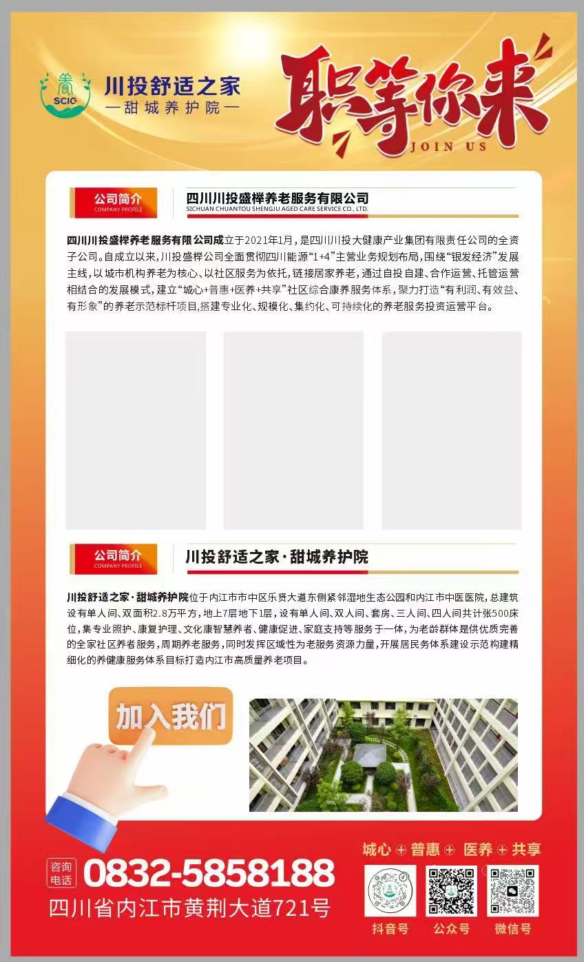 >>【就业招聘发布2025-5】四川川投盛榉养老服务有限公司(内江市中区)招聘信息